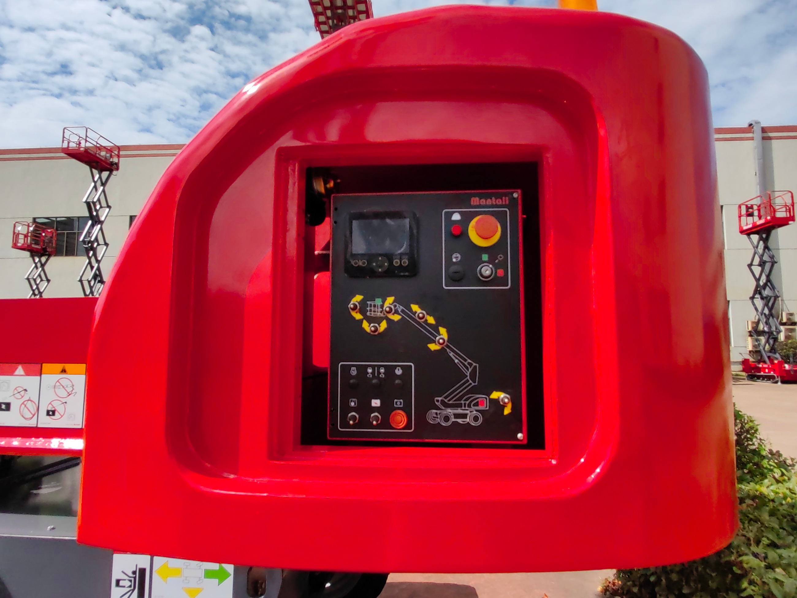 標準特征液壓調平工作平臺稱重系統傾斜保護系統180°液壓旋轉平臺5寸彩色大屏幕四輪剎車后方檢測和行駛確認故障診斷系統緊急制動解除三手柄漸變比控制緊急停止系統四輪驅動喇叭和蜂鳴器安全警示緊急下降系統泡沫輪胎報警燈安全警示最大允許5°工作傾角腳踏開關